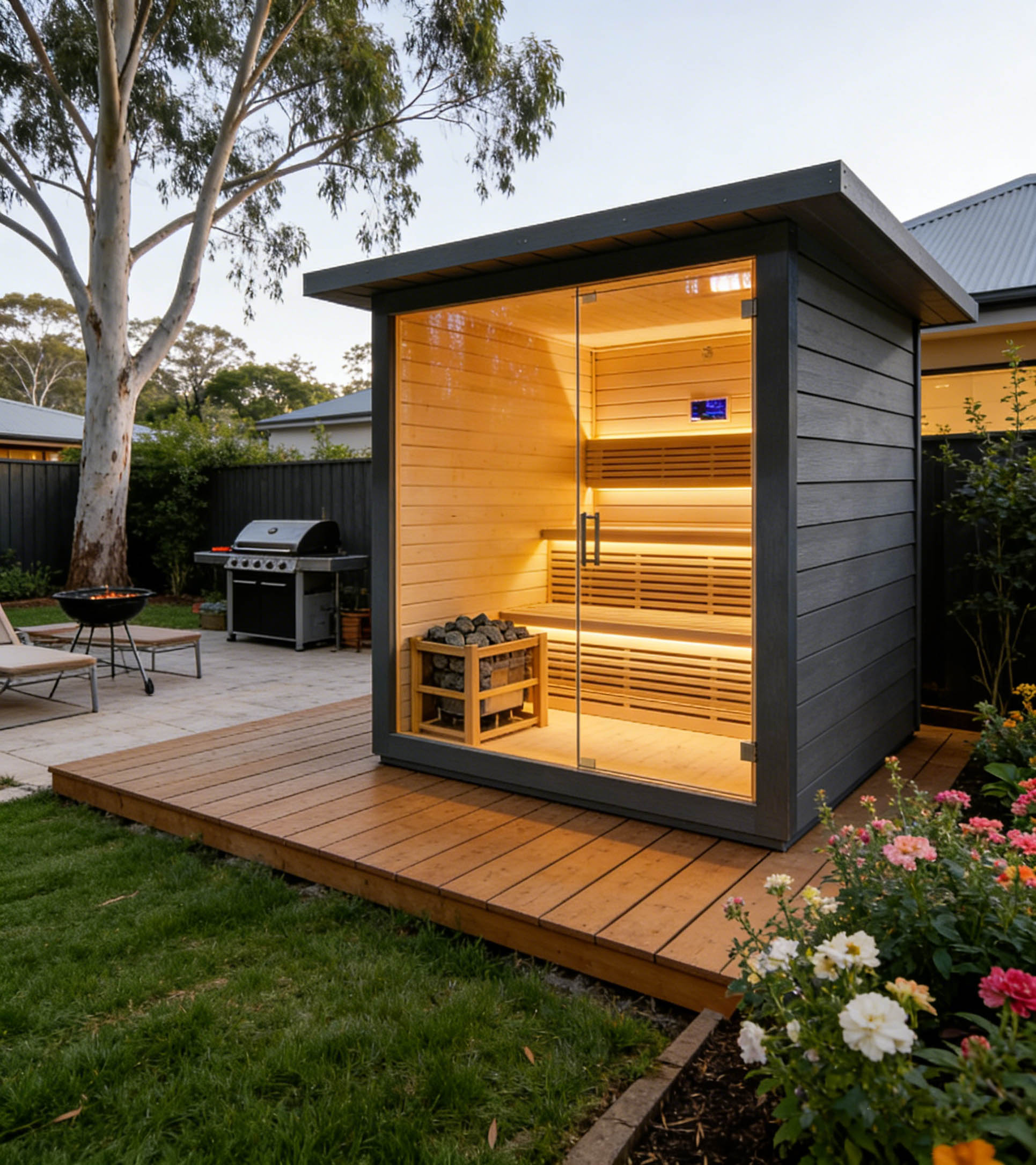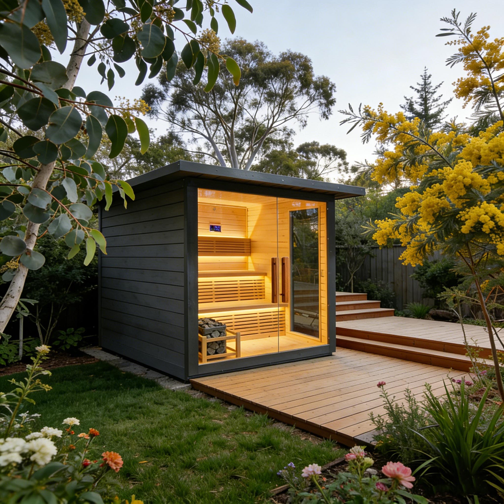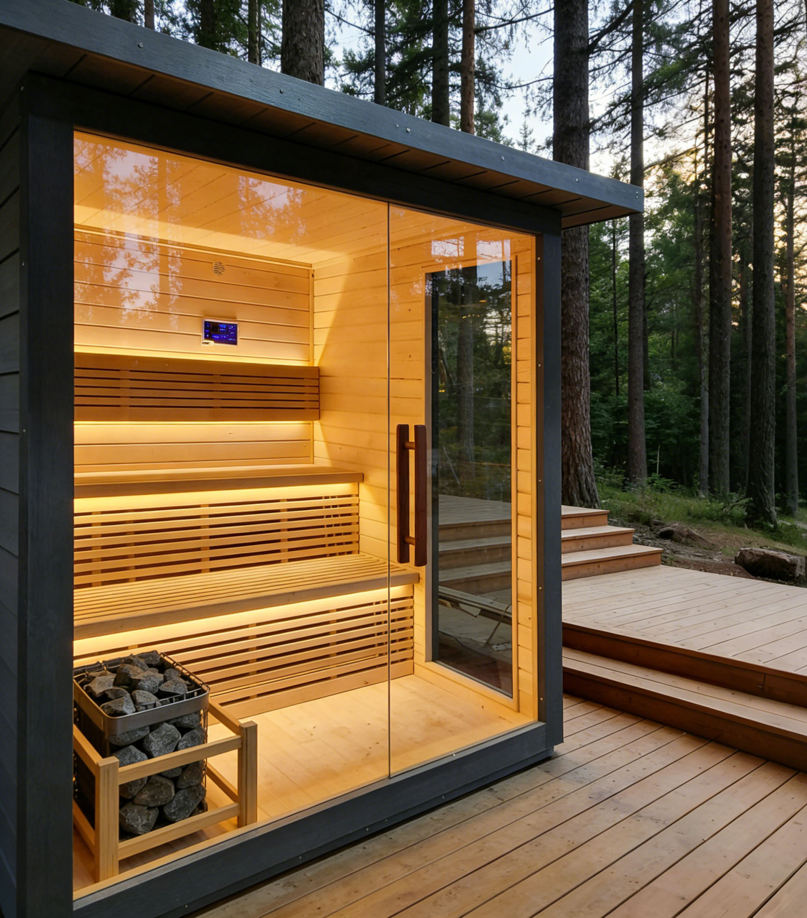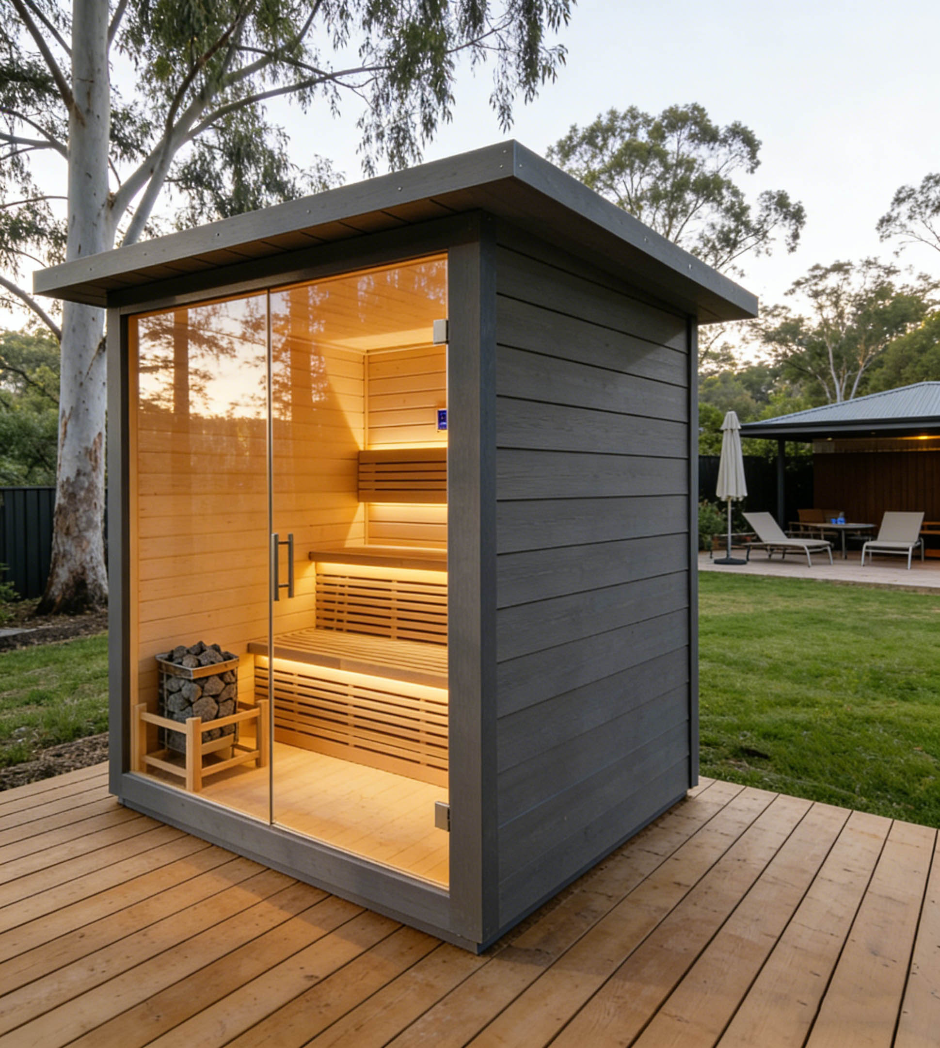 Outdoor thermally modified wood sauna room, crafted from selected high-quality thermally modified wood, which is corrosion-resistant and crack-resistant, suitable for outdoor environments. With a closed constant temperature design, it heats up quickly and locks in heat, allowing you to enjoy a comfortable sauna bath. Its simple design blends into the courtyard scenery, and the safe and environmentally friendly materials create a natural and pleasant outdoor relaxation space for you.